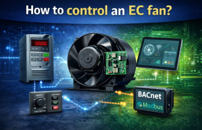 A: EC fans can be controlled manually via switches, or automatically using systems like Variable Frequency Drives (VFDs), Modbus, BACnet protocols, or IoT for real-time, energy-efficient performance adjustments.